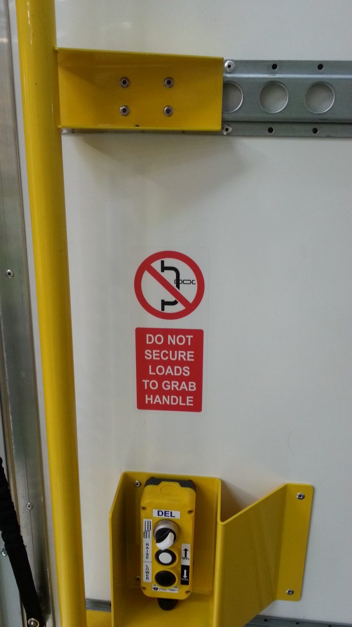 Decal – DO NOT SECURE LOADS TO GRAB HANDLE – White/Red
